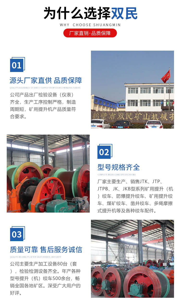 鶴壁市雙民礦山機械有限公司是鑿井絞車廠家,以制造大型礦山提升設備,電器成套自動化控制系統為主的科研型高科技企業,是國家礦山專用設備及配件產品定點生產單位。主要生產