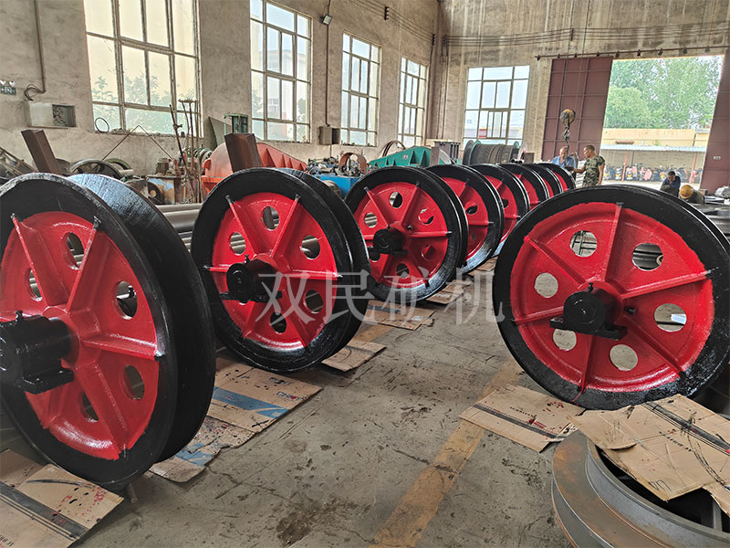 懸吊天輪又按鑿井絞車的性能分為單槽天輪和雙槽天輪兩類,其中單槽天輪七種,雙槽天輪十種。一律采用固定心軸、整體軸承座支承,軸承座和繩輪均采用HT20-40普通鑄鐵。