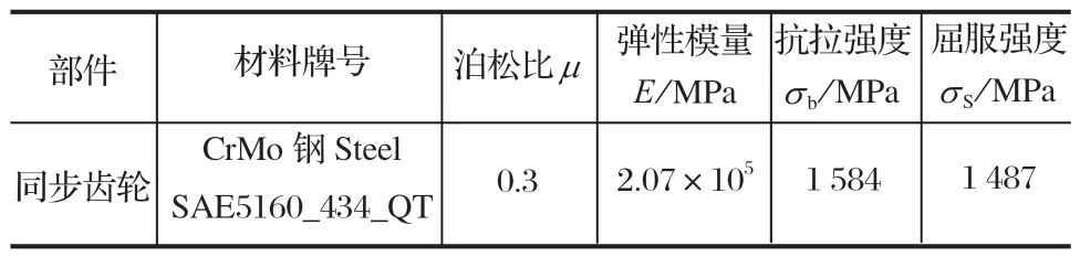 表1 同步齒輪結(jié)構(gòu)參數(shù)